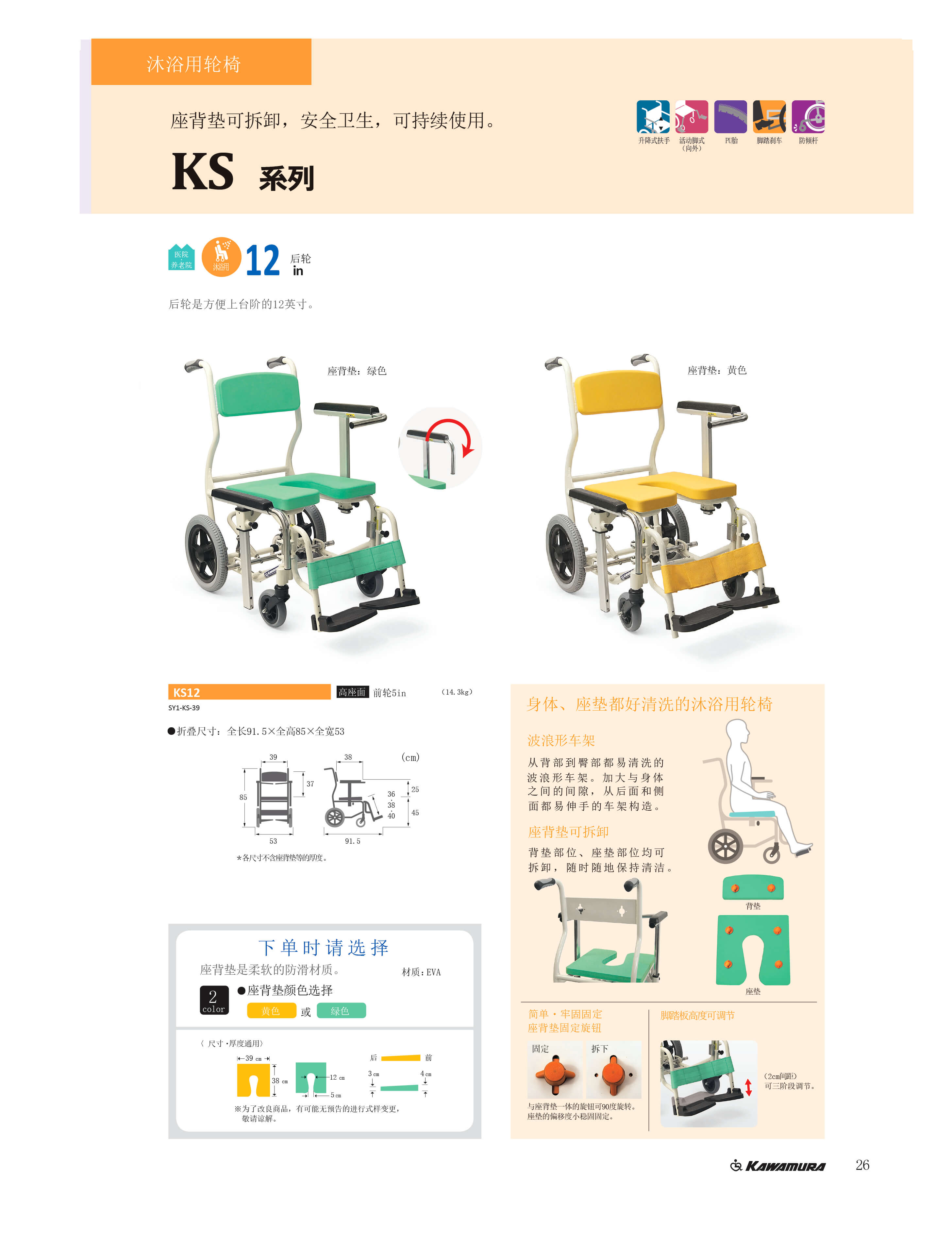 KS12沐浴用輪椅車